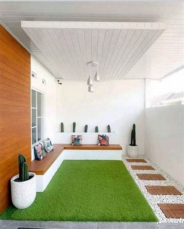 Memanfaatkan palet warna monokrom juga bisa menjadi pilihan yang menarik dan modern. Menggunakan gradasi satu warna, seperti abu-abu dari terang hingga gelap, dapat memberikan kesan kedalaman dan tekstur pada teras. Sebagai tambahan, aksesoris seperti pot tanaman dengan warna senada dapat memperkaya estetika tanpa mengurangi rasa nyaman. Menurut studi oleh Bahman Guyuron dari Cleveland dan Case Western Reserve University, warna monokrom dapat memberikan kesan ketenangan dan harmoni yang diperlukan dalam menciptakan suasana yang nyaman di ruang luar rumah.