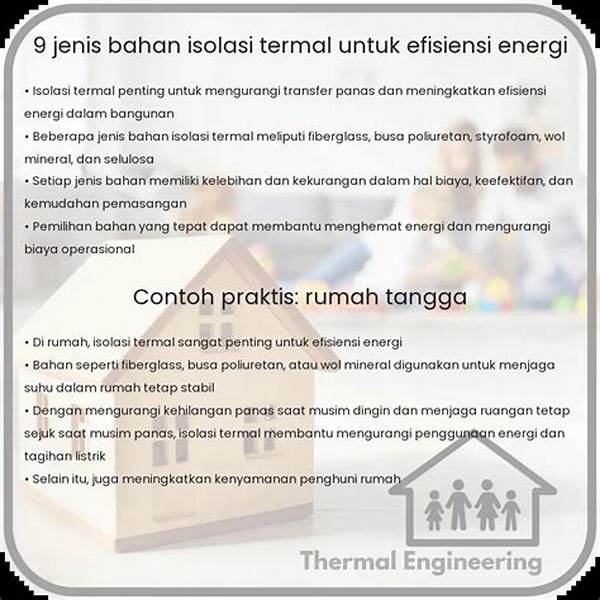 Di Amerika Serikat, produsen juga mulai memanfaatkan bahan daur ulang untuk memproduksi isolasi termal, mengurangi dampak lingkungan dari produksi material baru. Menariknya, inovasi ini tidak hanya menguntungkan dari sisi efisiensi energi, tetapi juga menjawab tantangan pengelolaan limbah. Jadi, dengan adopsi yang luas, isolasi termal untuk mengurangi konsumsi energi dapat menawarkan solusi komprehensif yang memadukan efisiensi, keberlanjutan, dan efektivitas biaya.