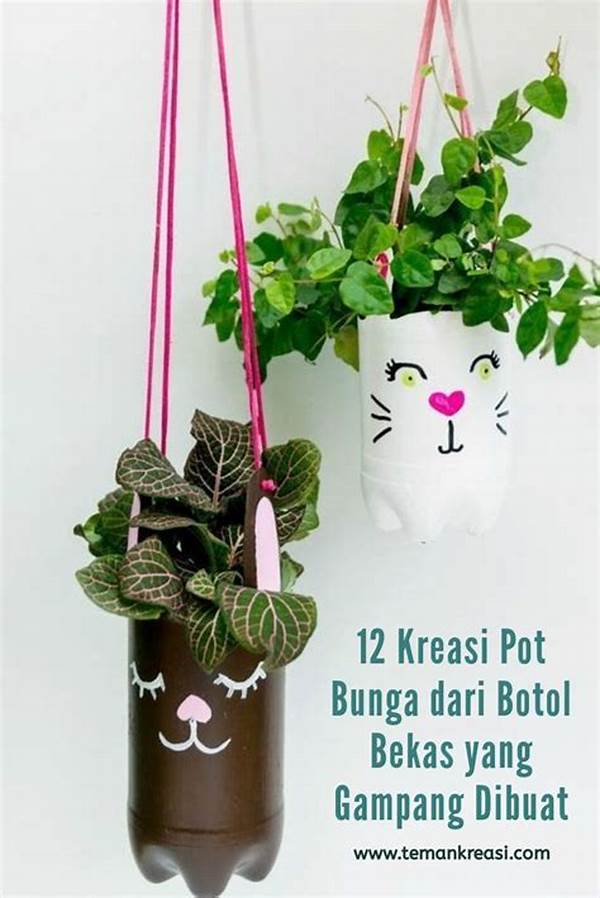 Menghadirkan sentuhan pribadi dalam kreasi pot gantung artistik dapat dilakukan dengan menambahkan elemen yang mencerminkan kepribadian Anda. Misalnya, Anda dapat menggambar atau melukis pot dengan pola atau motif favorit. Statistik menunjukkan bahwa 72% orang merasa lebih terhubung dengan ruang pribadi mereka ketika elemen dekorasinya personal dan unik. Ini tidak hanya meningkatkan kenyamanan, tetapi juga memperkuat identitas ruang yang Anda tempati.