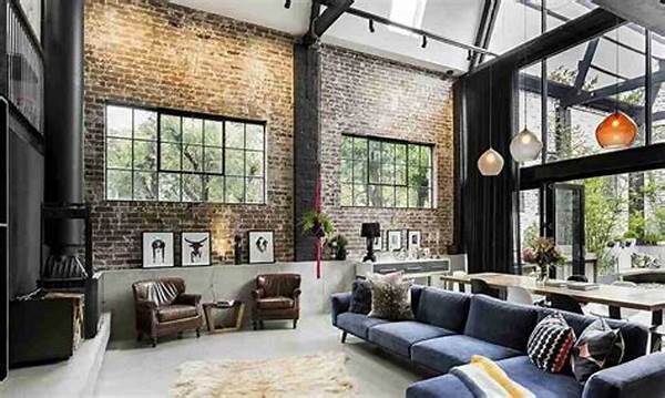 Meskipun sumber cahaya alami selalu menjadi pilihan terbaik, penerangan buatan dapat menambahkan karakter pada ruangan. Simaklah beberapa contoh rumah dengan tema industrial di mana mereka memilih lampu besar berbentuk bulat dengan kabel-kabel terbuka yang memperkuat tampilan industri. Selain itu, lampu dengan elemen kaca bertekstur dapat memantulkan cahaya secara menawan, meningkatkan estetika ruang tamu. Penting untuk menggabungkan jenis penerangan ini secara strategis sehingga dapat memenuhi kebutuhan praktis sembari menambah daya tarik visual pada ruangan Anda.