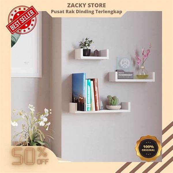 Ketika memilih desain rak dinding minimalis hemat ruang, ada beberapa faktor yang perlu dipertimbangkan. Pertama, sesuaikan dengan tema dan warna ruangan. Rak dengan warna netral seperti putih atau abu-abu dapat dengan mudah menyatu dengan berbagai dekorasi interior. Kedua, perhatikan bahan pembuat rak. Kayu dan logam merupakan bahan yang umum digunakan karena daya tahan dan kemudahannya untuk dibersihkan. Berikutnya, pastikan ukuran rak sesuai dengan ruang yang tersedia. Rak kecil dengan beberapa tingkat sudah cukup untuk area dengan luas terbatas. Contoh lainnya adalah rak dengan bentuk asimetris yang menambahkan keunikan tanpa memakan banyak ruang.